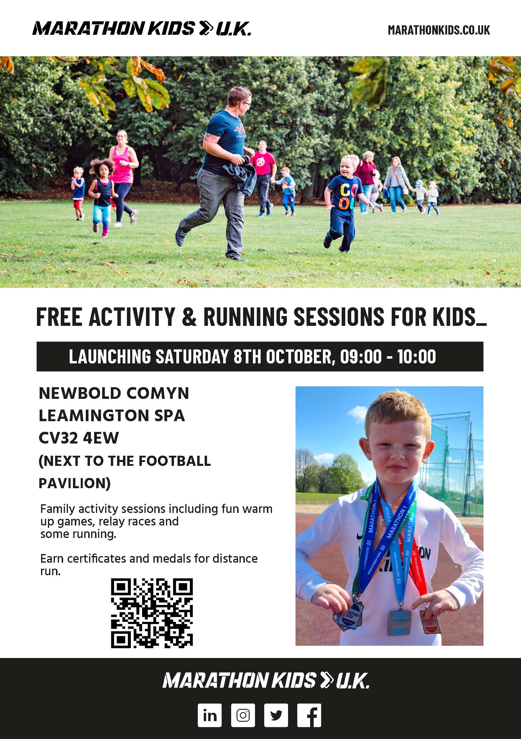Marathon Kids are launching free park-running and fun for children and families on Saturday 8th October 2022. Activity sessions include games, relay races, running and more! The event will run from 9am to 10am at Newbold Comyn, Leamington Spa, CV32 4EW (next to the Football Pavilion).